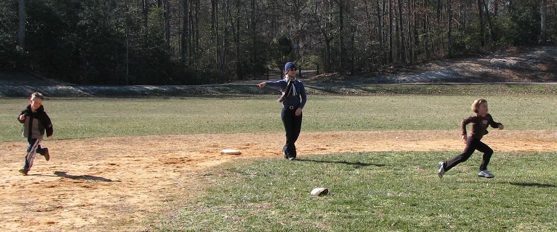 Noël directs traffic at the kickball
