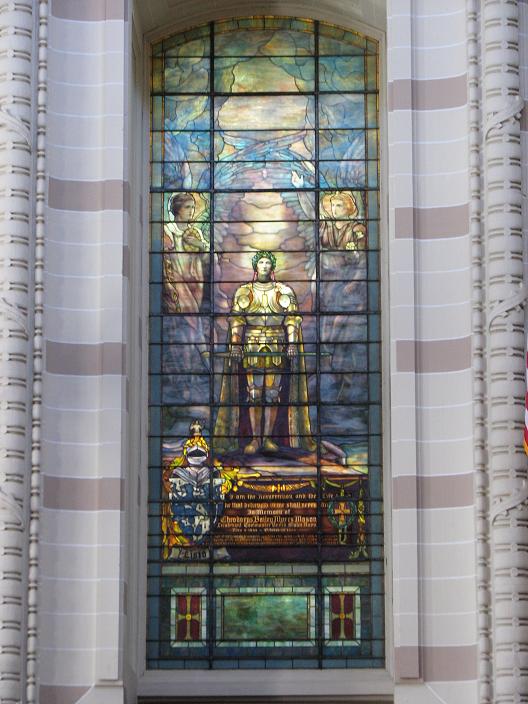 is portrayed in stained glass